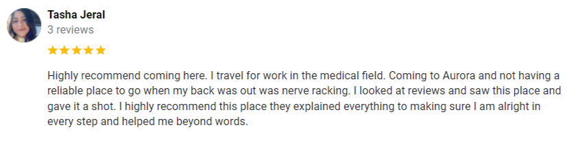 "5 out of 5! Dr. J was extremely helpful, professional, and relieved my back pain in two visits. The staff was extremely friendly and kind. I absolutely would recommend Advance performance! Thanks Dr. J and Kendra!"